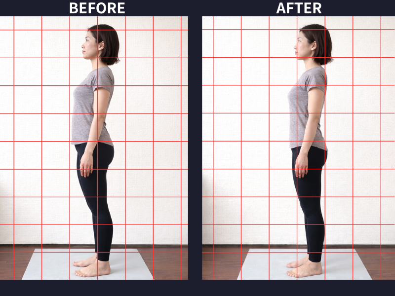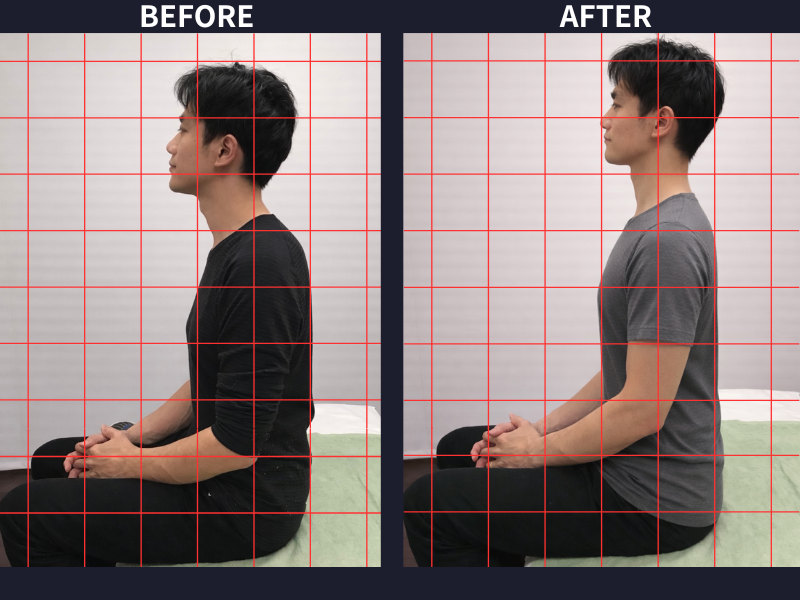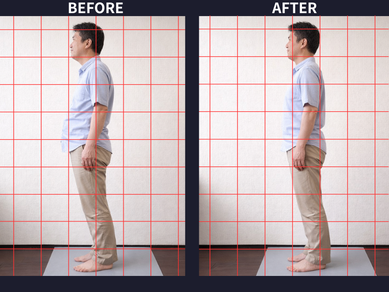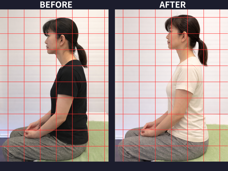 写真を撮ってもらった自分の姿勢が驚くほど悪く、姿勢改善をしてもらえるこちらに来て良かったとまず思いました。