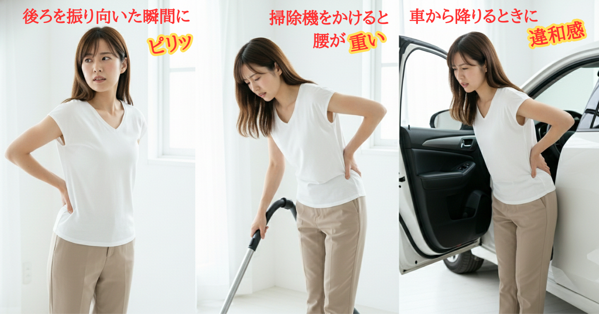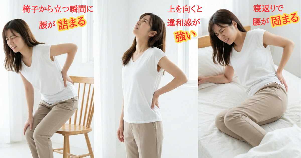 腰痛は、「前かがみ」「反る」「左右のねじれ」など、動作の違いから原因を読み解けます。どんな姿勢で痛むのかを観察することが、回復の第一歩です。「なんとなく痛い」を放置せず、動きや姿勢のクセを整えることで、腰はもっと軽く、動きやすくなります。