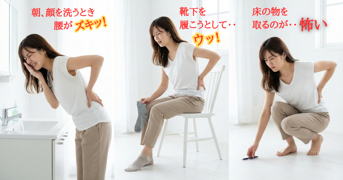 前かがみで痛む腰痛(洗顔・靴下をはく・床の物を取る)